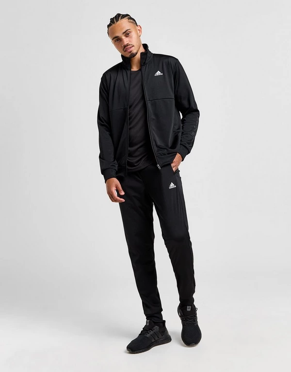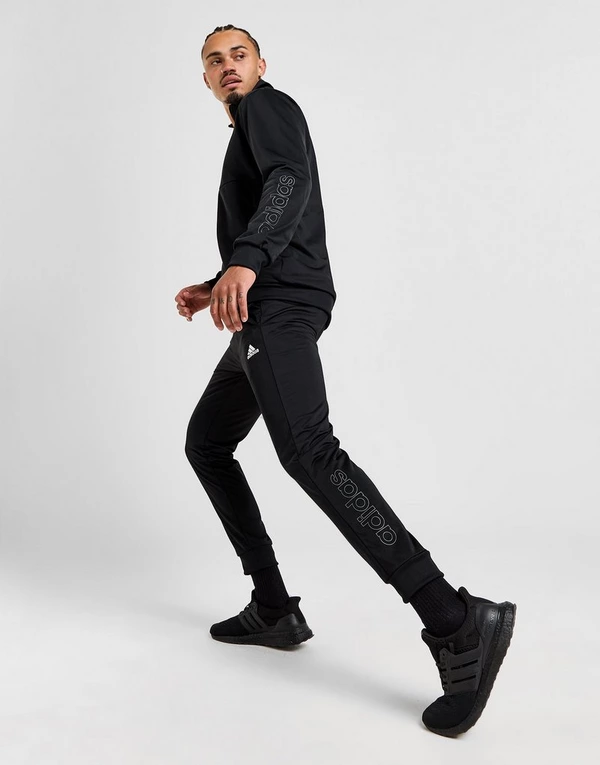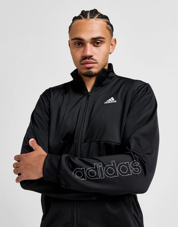 Des journées actives aux jours de récupération, adaptez votre tenue avec ce survêtement Linear Poly pour hommes d’Adidas. Dans un coloris noir, cet ensemble de coupe classique est fabriqué à partir d’un tissu tricoté en polyester recyclé lisse pour un port confortable, avec la technologie AEROREADY qui évacue la transpiration pour vous garder au frais. Le haut de survêtement entièrement zippé présente une encolure entonnoir et des bordures côtelées, tandis que le pantalon comporte un cordon de serrage sur la taille élastiquée. Fini avec des poches latérales, le logo adidas et le logo Sportswear. Lavable en machine. | Notre mannequin mesure 6’1″ avec un tour de poitrine de 36,5″ et porte une taille medium.
