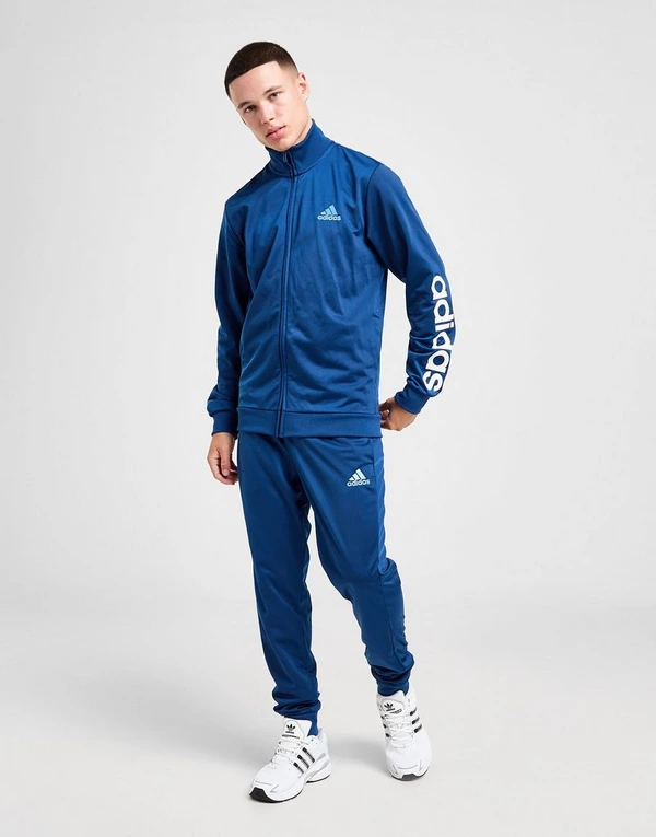 Améliorez vos tenues de rue avec ce survêtement Poly Linear pour hommes d’Adidas. Dans un coloris Midnight Navy, cet ensemble est fabriqué en polyester recyclé lisse et léger pour un confort durable. Il comprend un haut de survêtement à manches longues avec une fermeture entièrement zippée et un col entonnoir pour un look classique, ainsi qu’un pantalon de survêtement assorti avec une taille élastiquée à cordon de serrage pour une sensation personnalisée. Il est doté de bordures côtelées extensibles et de poches pour ranger vos essentiels. Fini avec la marque adidas signature partout. Lavable en machine. | Notre mannequin porte une taille médium. | JP1670