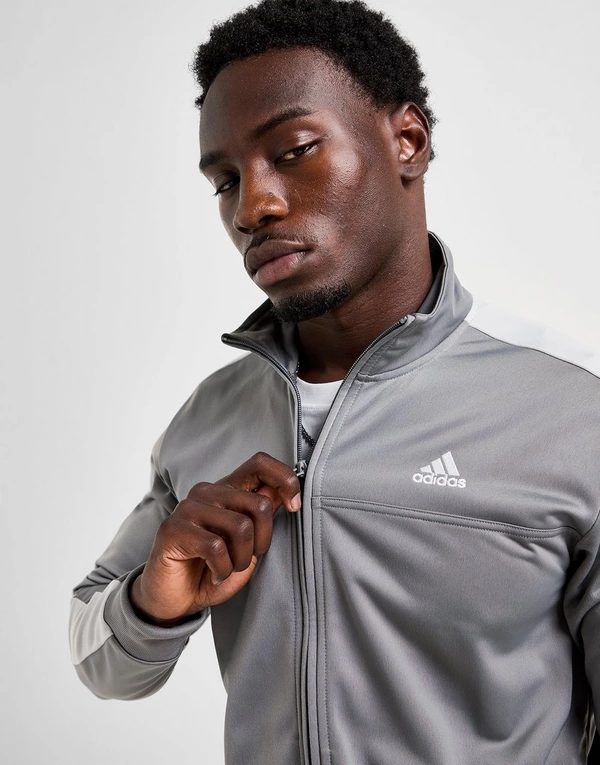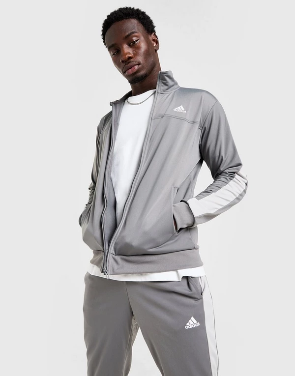 Ce survêtement adidas vous garantit un confort optimal tout au long de la journée. Confectionné en maille confortable, il arbore un design colorblock original. Les poignets côtelés retiennent la chaleur, parfait pour sortir ou faire des courses, tandis que les poches latérales permettent de garder vos effets personnels à portée de main. Un petit logo adidas sur la poitrine et la jambe souligne son inspiration sportive.