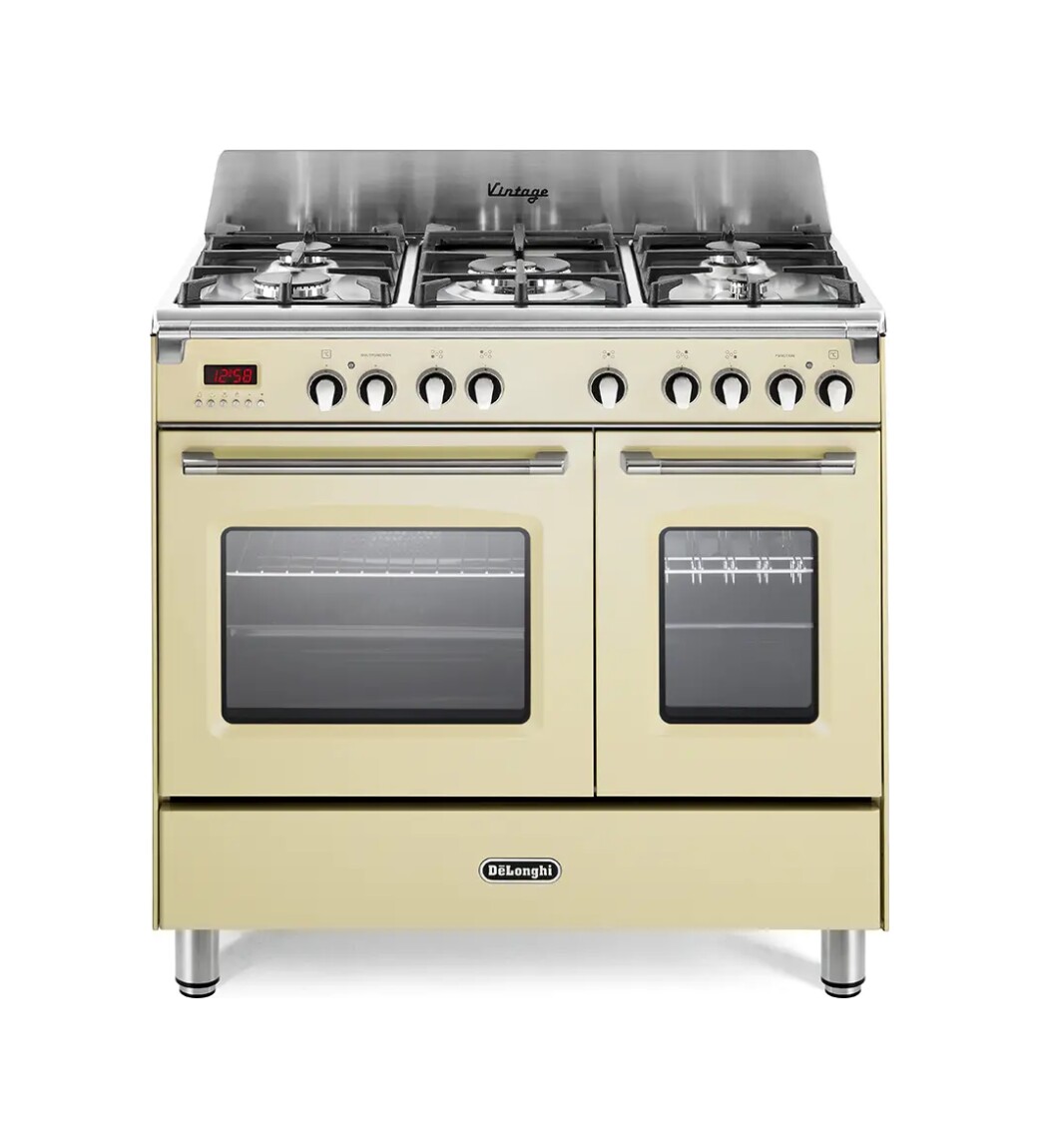 De Longhi MEM965TBXED Mastercook Approche de la cuisine 90 cm – 5 feux + 2 fours électriques – chauffe-plat – crème