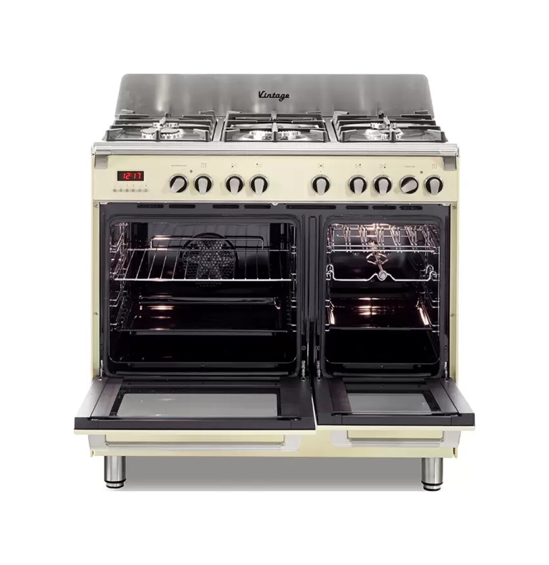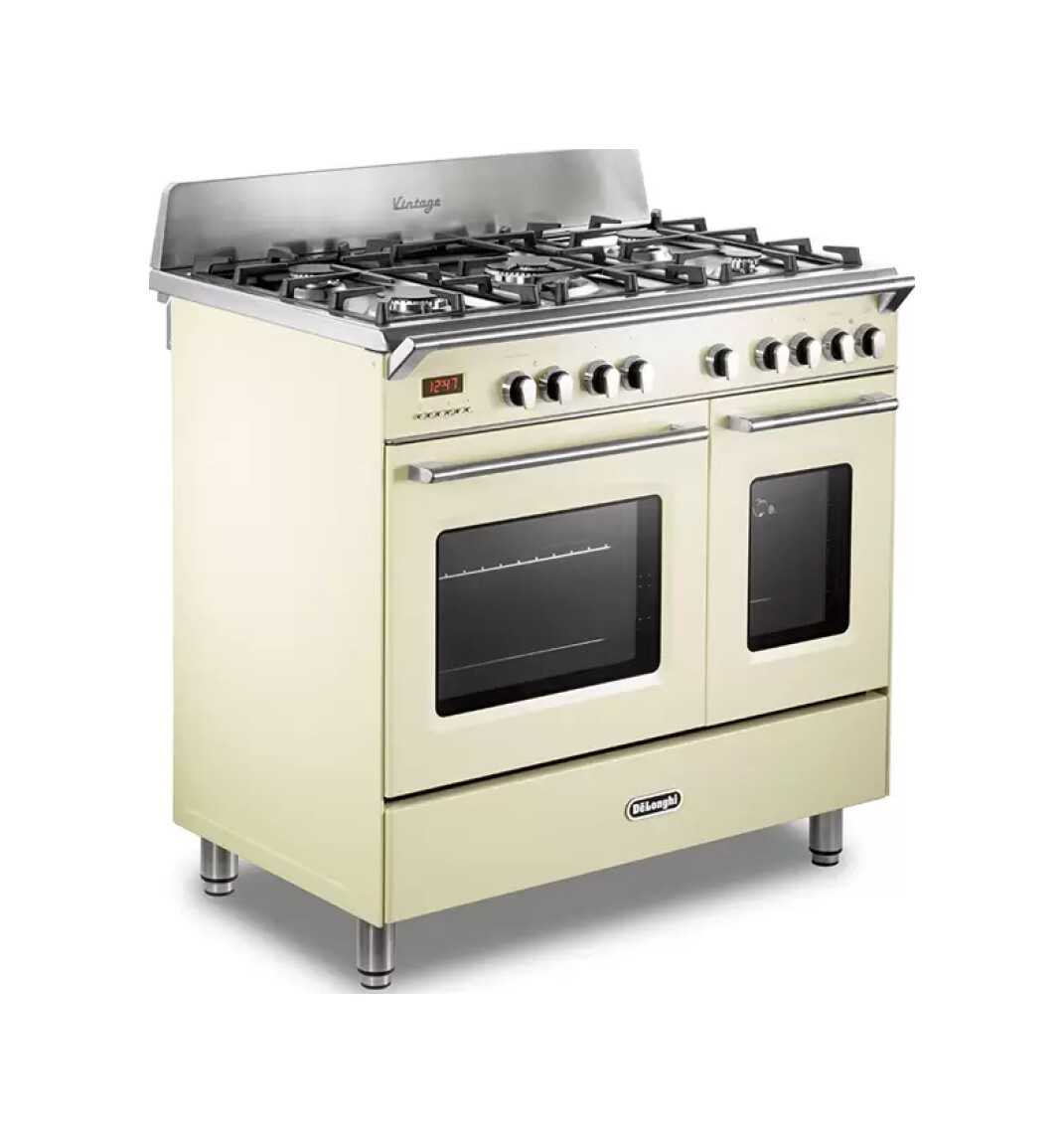 Cuisine d’approche 90 cm – 5 feux + 2 fours électriques – chauffe plats – crème – MEM965TBXED – DE’LONGHI