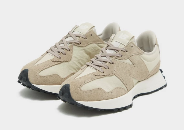 - Sortez avec un style inspiré de la piste avec ces baskets 327 pour femmes de New Balance. Dans un coloris Driftwood et Timberwolf exclusif à JD, ces baskets ont une tige en textile tissé léger avec des superpositions en daim doux. Elles sont dotées d’une fermeture à lacets ton sur ton avec un col de cheville rembourré pour un ajustement sûr, et reposent sur une semelle intercalaire évasée classique en mousse pour un amorti toute la journée avec un look rétro. Avec une semelle extérieure en caoutchouc cloutée adhérente sous le pied pour la traction, elles sont ornées de la marque New Balance classique partout.
